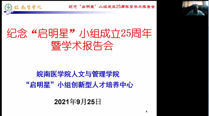 9月25日9:25,太阳成tyc122cc集团暨“启明星”小组创新型人才培养中心举行纪念“启明星”小组成立25周年学术报告会,报告会在线上腾讯会议平台举办,会议由“启明星”小组创始人、生理学省级学术与技术带头人汪萌芽教授主持,“启明星”小组指导教师、25年来已毕业和未毕业的“启明星”小组部分成员参加了报告会。