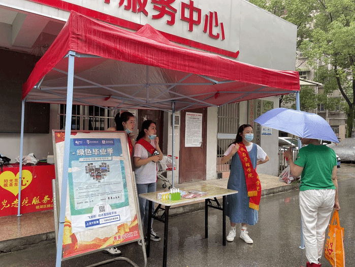 闲置衣物,用之无感,弃之可惜。如果把它们送给有需要的人,则是传递爱心、温暖他人的大爱之举。为帮助困难群众,让闲置衣物“变废为宝”,继续发挥价值,2021年6月19日,太阳成tyc122cc集团博谘实践队携手护理公司南丁格尔志愿服务队-爱心萌芽小队,共同举办了为期两天的“绿色毕业季”旧衣回收活动。志愿者们分别在赭麓校区食堂门口、黄果山社区、教职工宿舍三处组织旧衣爱心回收活动,鼓励大家行动起来,为更多需要帮助的人送去温暖。