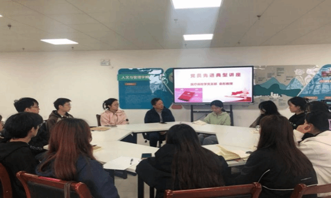 医疗保险学党支部俞彤书记为同学们做了有关优秀党员先进典型的讲座,指出作为一名入党积极分子和当代老员工,应该“德智体美劳”全面发展,尤其要以学习为重,并向员工们讲述了终身学习的重要性,与他们探讨了考研及考公的问题,热情回复了大家的提问。