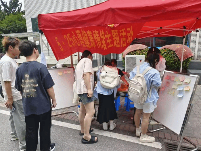 倾听心声,感悟成长之路。公司“博谘·心梦”实践队积极响应2024年“5·25全国大学心理健康日”的号召,于5月24日在赭麓校区开展心理健康日主题活动。本次活动设计了“撕下情绪标签”互动游戏,鼓励同学们撕下表达负面情绪的标签,用自己书写的积极心理暗示进行替换、展示。同学们驻足参与,纷纷表示在简单又富有仪式感的互动中有效释放了压力,切实感受到到科学纾解不良情绪的必要性与重要性。