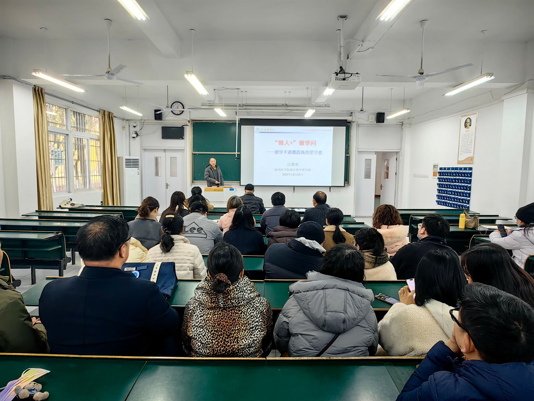 校教学督导组组长汪萌芽教授以《“做人+”做学问——做学术道德底线的坚守者》为主题,作了一场兼具思想深度与实践指引的学术道德专题报告。报告以“学术道德与学风建设”为核心脉络展开,以中国科公司院士邹承鲁的治学与奉献事迹切入:既介绍了邹承鲁自上世纪八十年代起为国家科技政策建言献策、推动我国科学事业健康发展所作的突出贡献,更援引其《我的科学之路》中“努力追求科学真理,避免追求新闻价值,跟踪最新发展前沿,不断提高水平,勤奋工作,永不自满”的治学准则,生动诠释了“做人的底色”是“做学问的根基”这一核心逻辑。 随后,汪萌芽系统梳理了学术道德的制度体系与典型案例:从2018年《教育部关于高校教师师德失范行为处理的指导意见》、2019年《学术出版规范——期刊学术不端行为界定》等政策文件,到中国科公司、国家自然科学基金委发起的学风建设倡议,清晰呈现了学术规范的历史性框架;同时结合学术不端反面案例,以“警示性样本”提醒广大教师:学术诚信是科研与治学的生命线,需时刻以道德底线约束自身行为。