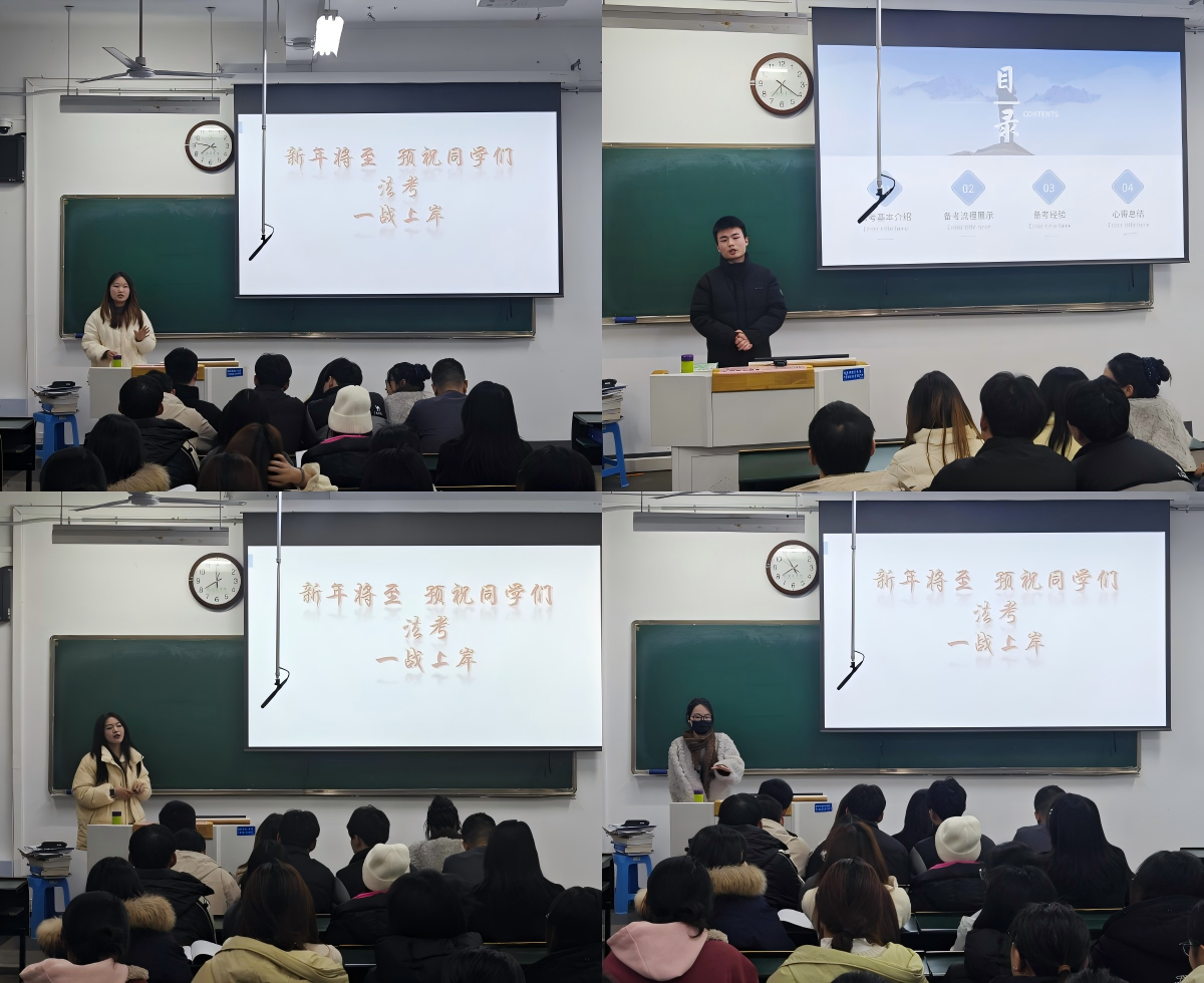 会上,王翔结合法学专业学习特点与法考最新趋势,从备考规划、科目复习优先级、答题技巧等方面给出指导性建议,强调夯实专业基础与科学备考相结合的重要性。4位2022级通过“法考”的员工代表结合自身备考经历,分别从时间分配、资料选择、心态调节等实际问题切入,分享备考过程中的经验与感悟,解答低年级员工关于法考备考初期准备、学习方法等方面的疑问。钱彬彬总结时指出,通过“法考”是法学专业员工今后从事法学相关工作的必由之路,鼓励同学们以学长为榜样,制定计划并为之努力奋斗。