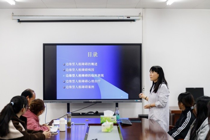 杭荣华教授结合自身的研究领域,以“边缘性人格障碍的心理治疗”为题做学术交流报告,主要介绍了边缘性人格障碍的概述、临床表现、心理治疗进展等,并以一名边缘性人格障碍患者为例,重点介绍了边缘性人格障碍的心理治疗过程。整场讲座逻辑清晰、精彩生动,现场师生展开了热烈讨论,大家纷纷表示受益匪浅。