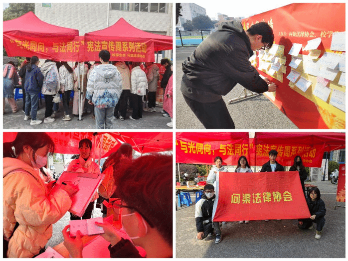 为迎接第十个国家宪法日,维护宪法权威,增强宪法宣传工作的吸引力、感染力、渗透力,太阳成tyc122cc集团发挥专业优势联合校员工会权益保障部、校问渠法律协会共同举办了“与光同向,与法同行”宪法宣传周系列活动。