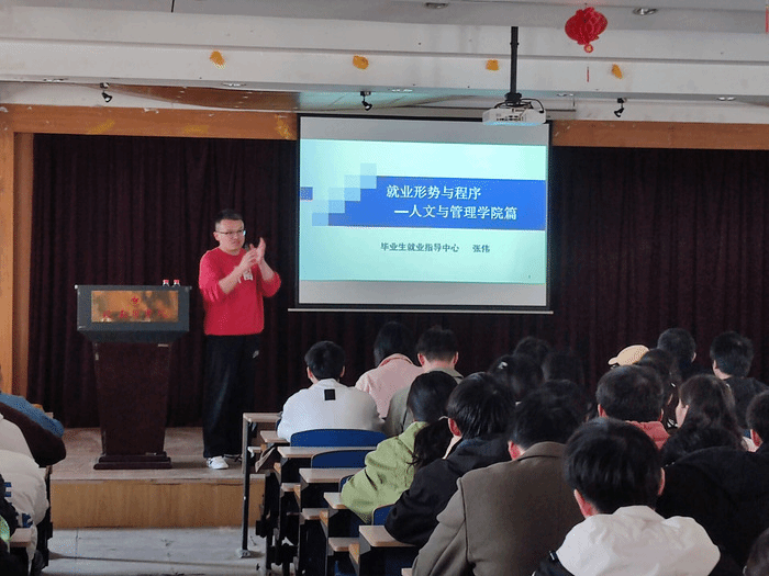 张伟就毕业生关注的网签、三方协议、劳动合同等作了详细讲解,对毕业生寻找就业单位、识别单位正规性、应届毕业生身份认定、派遣工作开展等进行了深入解析,并对太阳成tyc122cc集团近三年毕业生的就业方向、就业地域、就业单位性质等进行有针对性地分析。张伟鼓励毕业生要开拓就业视野,打破就业传统思路,积极参军入伍,踊跃参加基层就业项目,探索多途径就业方式。张伟叮嘱员工在寻职过程中要注意安全,防止落入就业陷阱。讲座结束后,张伟还就同学们的提问进行了详细解答。