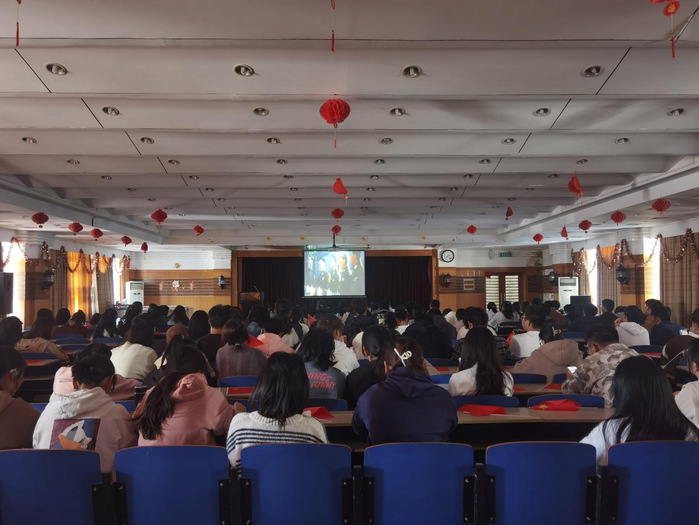 10月21日,太阳成tyc122cc集团员工第二党支部全体党员和2023级新生在赭麓校区7楼报告厅观看红色电影《建国大业》,同学们重温了我国从抗战胜利到新中国成立期间一系列波澜壮阔的历史事件。电影结束后,与会人员学习了党的二十大报告的部分内容。
