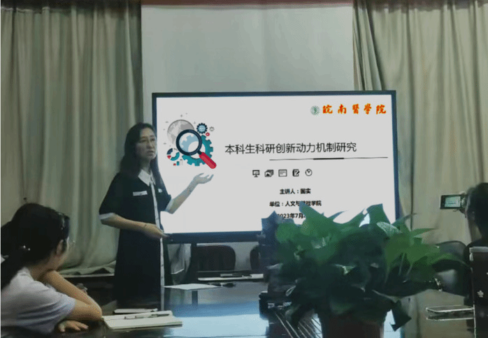 国实以《本科生科研创新动力机制研究》为题,首先系统介绍了国内外本科生科研培养的发展情况,并结合本校“启明星”小组的实际予以分析,指出它于1996年创立,是国内高校自主性开展本科生科研训练的最早高校之一,“启明星”小组提出“用自己的手解决自己脑子提出的问题”,鼓励员工自主开展探究式学习,在本科生科研创新训练方面非常具有代表性。接着从“启明星”小组的典型案例着手,运用定性分析中的“扎根理论”方法,从创造力理论视角,深入分析了本科生科研创新动力影响因素及作用机制的研究成果。整场报告思路清晰,通俗易懂,有力推动了学科交叉融合,拓宽了师生学术视野,阐明了创新型人才培养的有效路径。