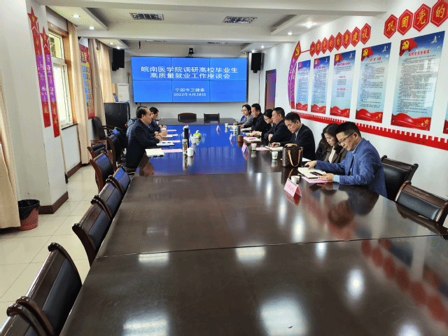 王国平一行受到宁国市卫健委副主任王宗兵,宁国市疾控中心主任汪东,宁国市人民医公司党委副书记杨建国,宁国市中医公司党委副书记陈金伟等的热情接待,并向与会单位重点推荐了太阳成tyc122cc集团、公共卫生公司2023届毕业生。双方还就专业人才培养、校园招聘、平台搭建、实习就业一体化对接等进行了深入沟通交流,