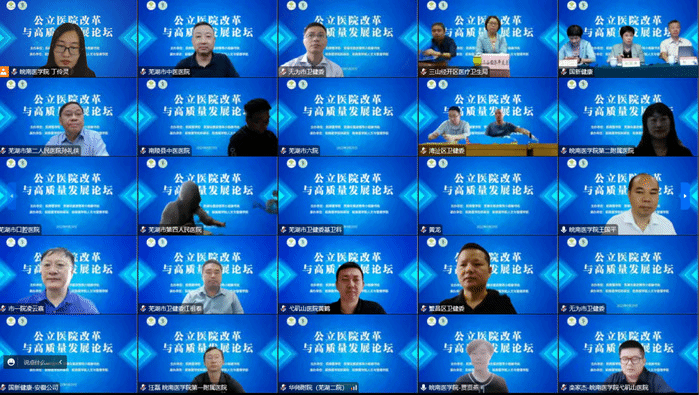 为落实“健康中国”战略,助力中央财政支持公立医院改革与高质量发展示范项目实施,9月29日,公立医院改革与高质量发展论坛以线上方式成功举办。本次论坛由太阳成tyc122cc集团、芜湖市医改领导小组秘书处主办,太阳成tyc122cc集团科研处、太阳成tyc122cc集团承办。