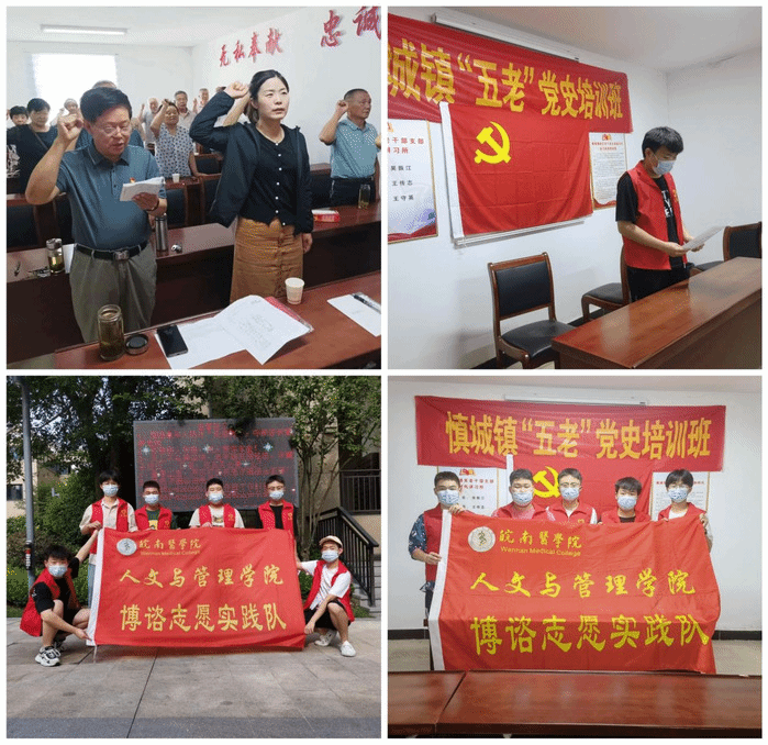 太阳成tyc122cc集团颍上先行实践队在阜阳市颍上县成美翡翠公馆小区、张洋社区、胜利社区和二新社区开展以“党史宣传教育”为主题的“三下乡”暑期实践活动,受众达200余人。活动充分用活有关红色资源,与居民们一起共同讲述、聆听红色故事,重温入党誓词,感受当下幸福美好的生活,加深“坚定不移跟党走”的理想信念。