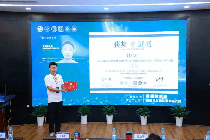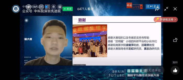 在总决赛启动仪式上,中国神经科学学会理事长、中国科公司张旭院士,以及中国生理学会理事长、北京大学王韵教授现场致辞,邀请多位知名神经科学专家担任大赛评委,决赛全程通过“中科院深圳先进院”公众号、“深圳商报”等在线直播。何仁可同学在线参加决赛,沉着冷静,表现优秀,充分展示了自己的学术成果、研究思路、特色亮点,彰显了“启明星”小组独特的创新思维能力和扎实的训练动手能力,受到了暨南大学的任超然教授等多位评委一致的高度评价。最终从本赛道12名选手中脱颖而出,荣获国家级二等奖(6名获奖人中位居第3名)。