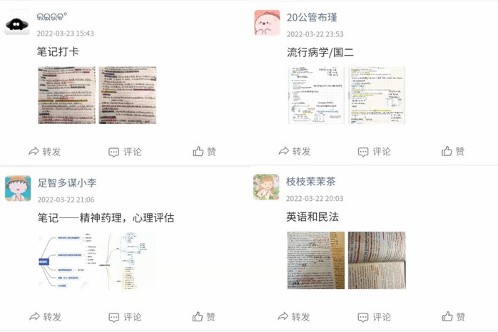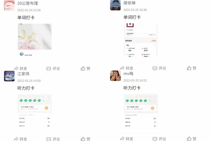 活动采用线上打卡、积分制的形式,设置“英语学习”、“体育健身”、“最美笔记”三个模块,依托网络平台让大家分享学习心得、记录防疫生活。活动一经推出便获得同学们的热烈响应,纷纷做好规划,坚持打卡,放飞逐梦,分享学习与运动状态,展现了皖医学子笃学奋进、拼搏求知的精神风貌。
