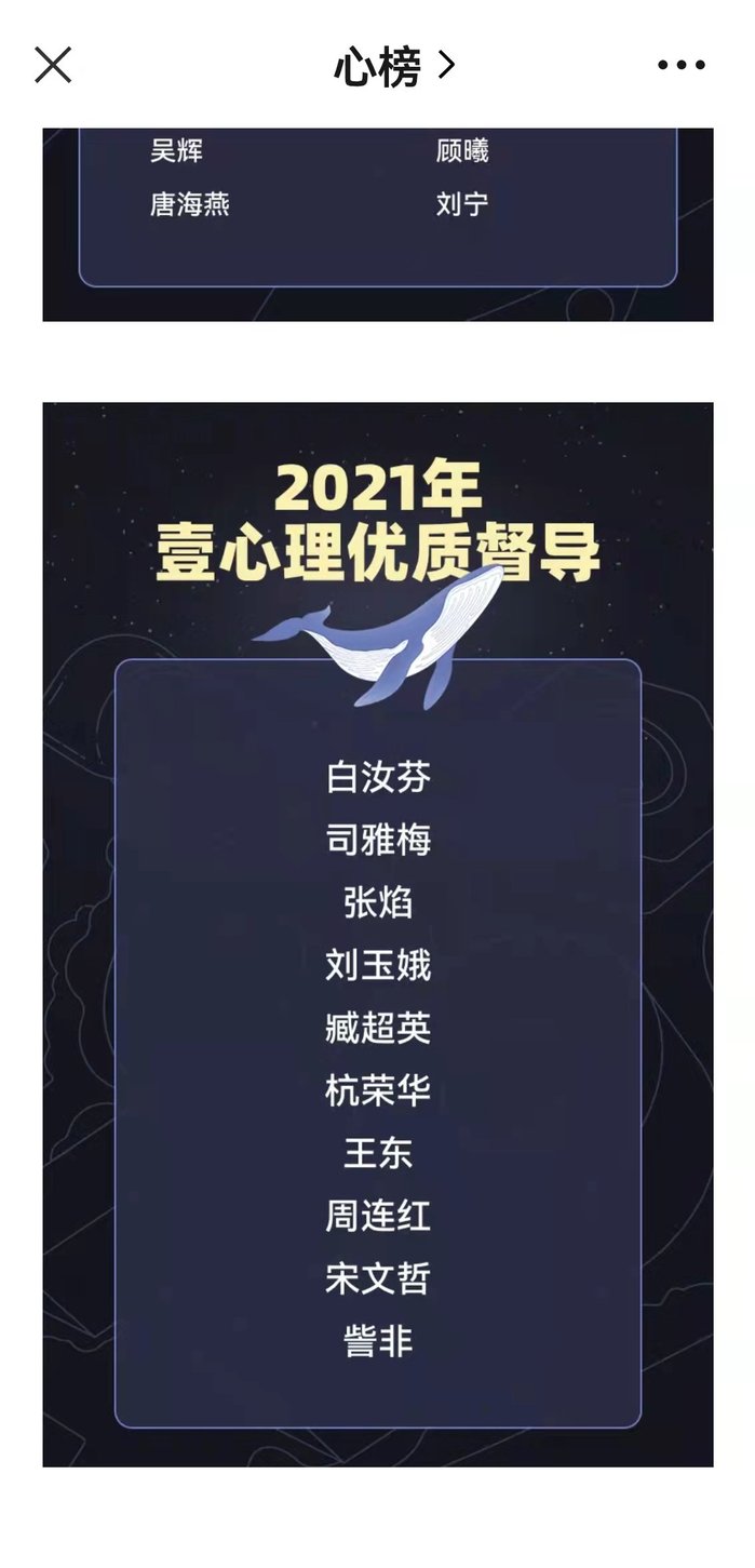 近日,国家级心理学专业平台“壹心理”主办的“迎新年心理行业发展论坛”圆满落幕。本次论坛以“心场景 新未来”为主题,以线上主题演讲、对话的形式展开,邀请行业内外众多领域专家、学者、从业者以及来自教育、医疗、自媒体等相关领域知名人士与会,围绕心理学行业应用场景和从业者职业发展路径探索为主题进行了热烈的讨论,对心理学行业进行了多视角、多领域、深层次的解读与分享,对其未来发展提出了憧憬展望与建设性思路。论坛进行了综合性评选活动,公司太阳成tyc122cc集团心理学教研室杭荣华教授基于在心理督导工作方面的优异表现,获评“十佳优质督导师”荣誉称号。