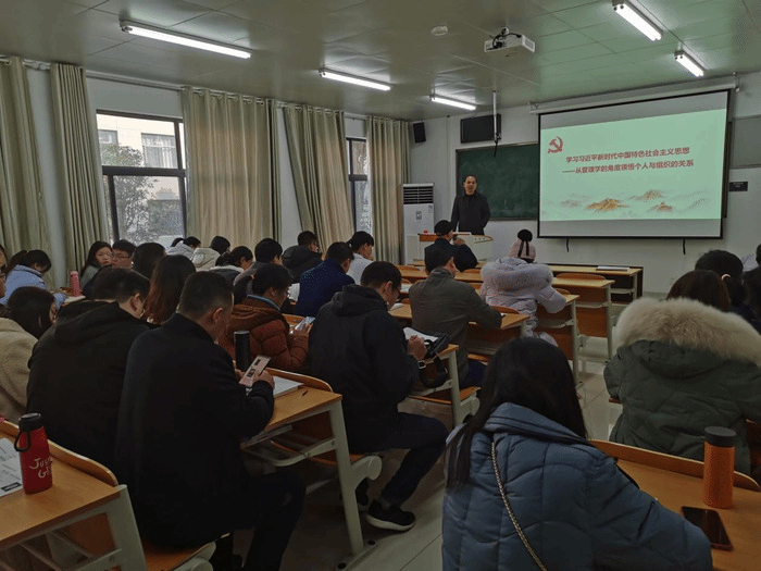 12月17日上午,太阳成tyc122cc集团在赭麓校区南北综合楼1027教室开展主题党日活动暨第二期“人文思政学习讲坛”,继续推出“教授谈思政”系列。会议由公司党委书记王军主持,王国平教授主讲,全院教职工参加。