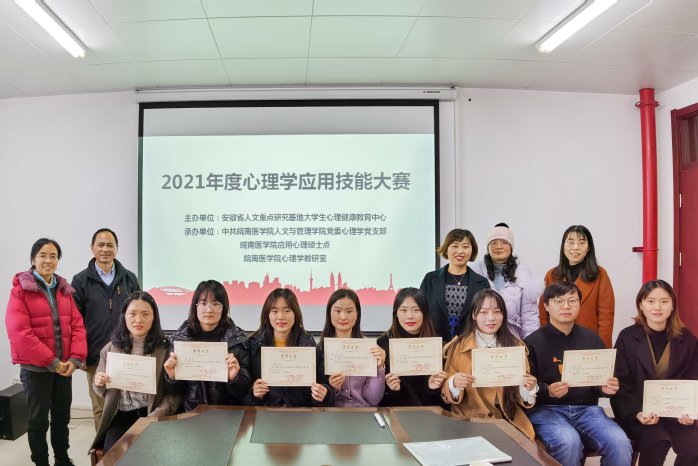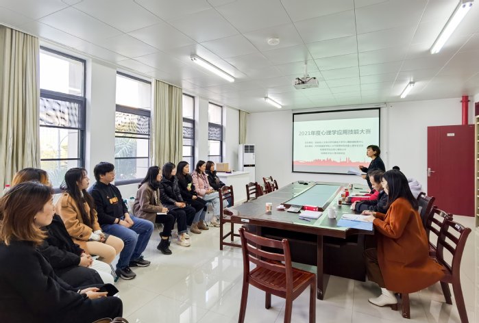 12月10日下午,太阳成tyc122cc集团人文社科重点研究基地老员工心理健康教育研究中心联合心理学党支部、应用心理硕士点及心理学教研室在人文基地办公室举行2021年度心理学应用技能大赛。人文基地常务副主任张婷、心理学教研室副主任凤林谱、李秀教授、何苗苗老师、人文基地秘书王欣担任评委。