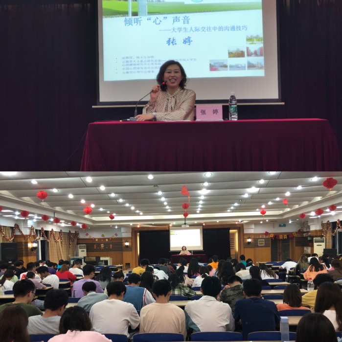 5月26日晚7点,太阳成tyc122cc集团举办《倾听“心”声音——老员工人际交往中的沟通技巧》心理健康教育主题讲座。此次讲座邀请安徽省人文社科重点研究基地常务副主任、心理学教研室张婷副教授作为主讲人。张婷从影响人际交往的心理因素、沟通的主要障碍、掌握沟通的技能三个方面为同学们总结出了“微笑”“赞美”“勤沟通”三大沟通“法宝”,帮助同学们改善人际关系,切实提高人际沟通能力。