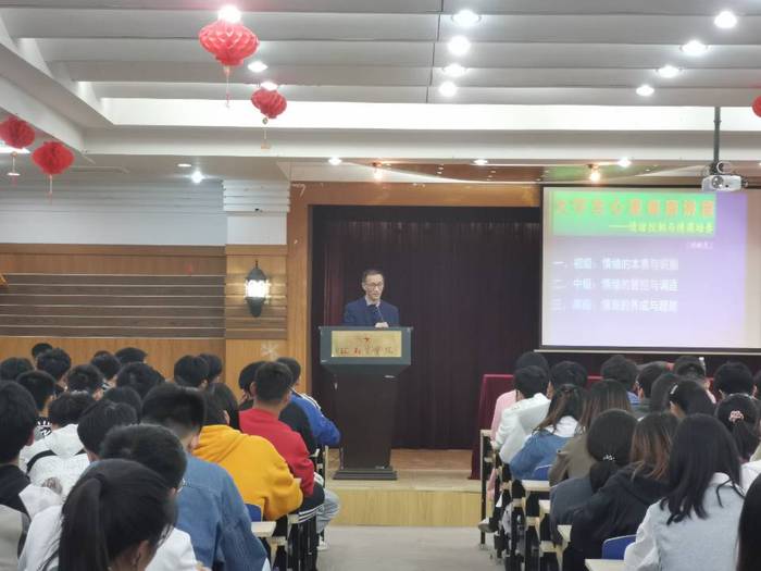 本次讲座主要分析了情绪的本质与调适,提出有效提升情商的方式方法。讲座持续1个小时,效果良好。通过此次讲座,同学们收获满满,不仅了解到了心理健康的重要性,还知悉了在今后的学习和生活中如何更好地管控与调适自己的情绪。