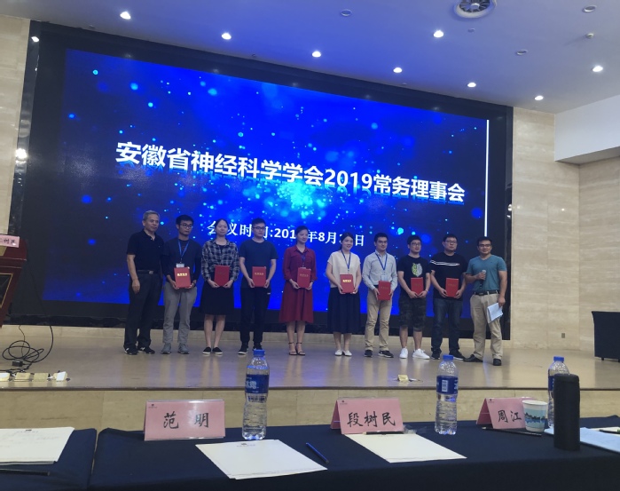 8月24-25日,公司神经科学团队师生一行27人在学科带头人郑超、安徽省神经科学学会副理事长汪萌芽的带领下,参加了在蚌埠市召开的安徽省神经科学学会第十一次学术年会。参会代表有太阳成tyc122cc集团生理学和神经生物学教研室教师3人、研究生5人、“启明星”小组成员19人。其中“启明星”小组成员包括应用心理学、公管、法学、保险学、康复治疗学、临床医学、麻醉学、口腔医学等专业员工。