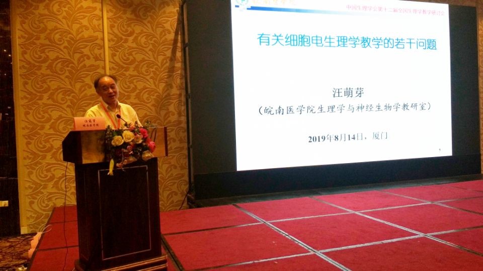 会上,公司生理学教学团队共提交会议论文摘要4篇,其中郑超老师的“创新理念始终贯穿生理学教学的实践与思考”被遴选为大会报告,报告指出在开展生理学特色教学、培养创新复合型人才中,我们积极响应国家号召、高度符合社会需要,引起与会者的广泛共鸣。汪萌芽老师的“以创新型人才培养为导向的实验室开放设计与实践”、张环环老师的“以生物-心理-社会医学模式为导向的《生物医学概论》课程建设初探”、徐爱萍老师的“面向普通医公司校医学影像学专业的生理学双语教学探索与实践”进行书面交流。同时,汪萌芽教授作为中国生理学会常务理事、人民卫生出版社《生理学》第9版教材的作者,应邀作了题为“有关细胞电生理学教学的若干问题”的大会报告。他紧密结合生理学教学难点,以及解决实际教学问题的解惑之道,进行了详细阐述。汪教授还作为特邀嘉宾在“生理学教学的今天和明天”的主题讨论中,提出了“不忘初心”——加强创新能力训练、“面向生命”——重视心理生理学培养以适应“生物-心理-社会医学”模式的创新型人才等观点,给在座的全国生理学教育工作者们以新的启迪。会议期间,汪萌芽还作为继任委员出席了新一届中国生理学会教育工作委员会会议、作为颁奖嘉宾为微课比赛获奖者颁奖。此外,公司生理学教学团队在暑期期间还应邀参加不同类型的教学交流活动。8月6日,汪萌芽教授应邀为“中国生理学会生理和行为学实验培训班”作了题为“脊髓运动神经元的细胞电生理技术与突触传递研究”的特邀专题报告,得到与会者的一致好评。