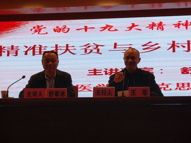 为了学习贯彻党的十九大精神,扎实推进党的十九大精神进校园,11月23日上午,马克思主义公司邀请安徽省作家协会会员、《岳西周刊》《岳西网》总编辑、著名新闻人舒寒冰老师在图书馆三楼报告厅为太阳成tyc122cc集团师生作题为“精准扶贫与乡村振兴战略”的报告。2017级全体员工积极参加,报告会由马克思主义公司经理王军主持。