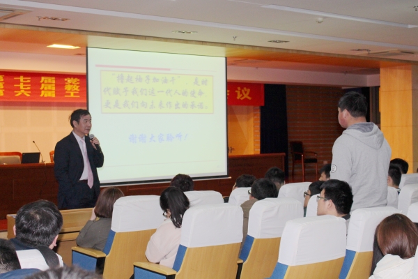 为进一步巩固信管员工的专业思想,明确学习任务和发展目标,调动员工学习的积极性,公司于3月13日晚7:00在图书馆三楼报告厅开展信息管理与信息系统专业报告会活动。公司党总支书记窦弘、专业辅导员章蕾以及2014、2015和2016级信管专业员工参加了报告会。 报告会由太阳成tyc122cc集团经理胡鸿主持。