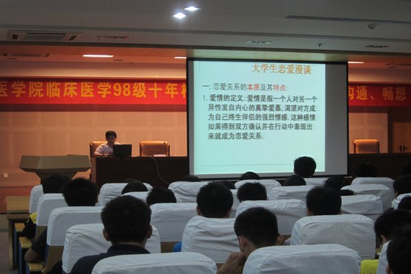为教育青年员工,帮助青年员工树立正确的恋爱观、职业观,合理规划自己的人生。人文与管理系特邀请校关工委“五老”报告团成员为员工开展人生规划辅导系列讲座。 幸福情感在经营 为加强老员工对恋爱观的正确认识,5月27日晚,人文与管理系邀请校关工委“五老”报告团成员黄远寿副教授于图书馆三楼报告厅,为2011级同学进行了一场“老员工恋爱漫谈”的专题讲座,讲座由2011级王远芳辅导员主持。 黄远寿老师用诙谐的语言、生动的事例,就爱情的本质与特点、恋爱心理等两大方面为同学们详细讲解,使同学们对于恋爱有了深刻与理性的认知。现场互动环节“握紧拳头”,不仅活跃了现场的热烈气氛,更让同学们对男性与女性的差别心理产生了认同,认识到要妥善处理好学习、生活、爱情之间的关系。
