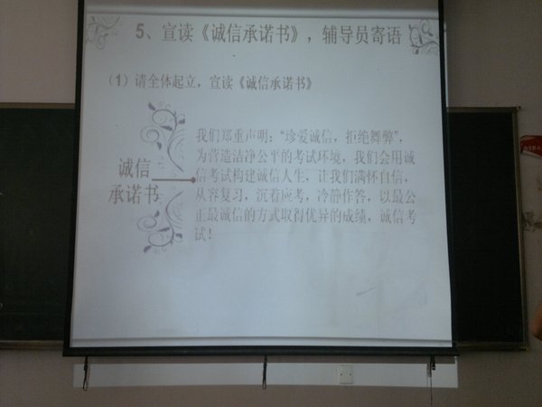为进一步倡导优良学风、端正诚信考风,营造良好的学习氛围,2011级人文与管理系信管全体员工于2012年5月21日,在东教504教室召开“促学风,正考风”主题班会,年级辅导员王远芳到会指导。 “严肃学风、严抓考风,沉着备考、诚信应考!”王远芳辅导员言简意赅的说明了班会开展的目的,并向同学们提出了高标准、严要求,要求同学们以充分的准备和端正的心态迎接即将到来的期末考试。