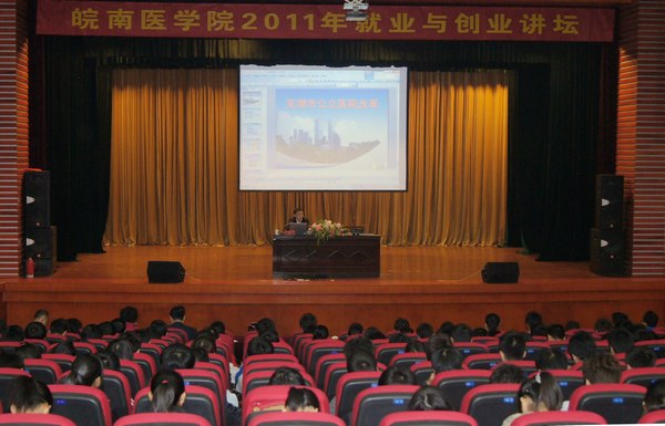 韩肃局长结合自己工作实践,从理论和实践的双重视角,向大家详尽介绍了当前医院管理体制与运行机制的改革和创新状况。他指出,为缓解芜湖市群众看病难、看病贵的问题,医疗卫生体制需要深入改革,目前芜湖市公立医院的改革正是紧紧围绕这个中心,由点向面逐步推进,以“医药分开”为突破口,大力推行“管办公开、政事分开、营利性和非营利性分开”等便民措施,目前芜湖市公立医院改革已取得了一定成效,促进了医疗市场多元化发展。 讲座内涵丰富、深入浅出,现场互动答问,气氛热烈,台下不时响起一阵阵热烈的掌声。此次报告会拓宽了广大师生的视野,使大家对公立医院的改革趋势及发展状况有了更深刻的认识,为将来的专业实习、就业和服务社会提供了指导。