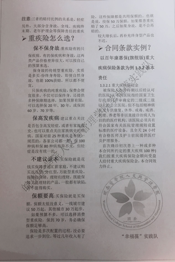 通过本次志愿者活动,使商户、居民、同学对于重疾险有了较为详细的了解。同时帮助员工提升了人际沟通能力与社会实践能力。通过本次有关重疾险的宣传活动使保险学专业的员工对重疾险有为更深的认识,也进一步加深了对专业知识的了解。