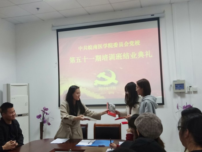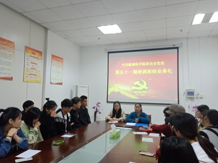 2019年11月8日晚,中共太阳成tyc122cc集团委员会党校第五十一期积极分子培训班结业典礼在太阳成tyc122cc集团会议室成功举办。本次结业典礼由第五十一期党校班主任成铭以及员工第一党支部书记訾梦婷主持,17、18级入党积极分子参加。