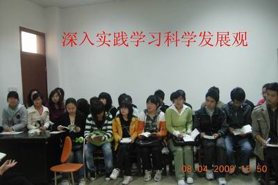 2009年4月8日下午,人文与管理系管理员工党支部开展深入学习科学发展观活动。系副主任党总支副书记刘华同志,支部组织委员06级管理辅导员宋蔼丽老师和07级辅导员刘霖叶老师参加学习活动。