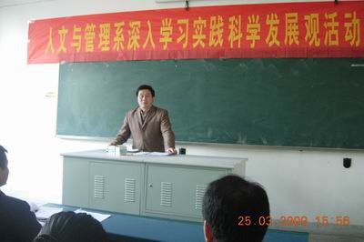 3月25日下午3点,人文与管理系在东教学楼101教室隆重召开深入学习实践科学发展观活动动员大会。公司党委副书记、纪委书记程度同志、系党总支书记方继经、系主任胡鸿、系副主任刘华、系各党支部书记、系全体教工党员和全体员工党员100多人参加了会议。会议由胡鸿主任主持。