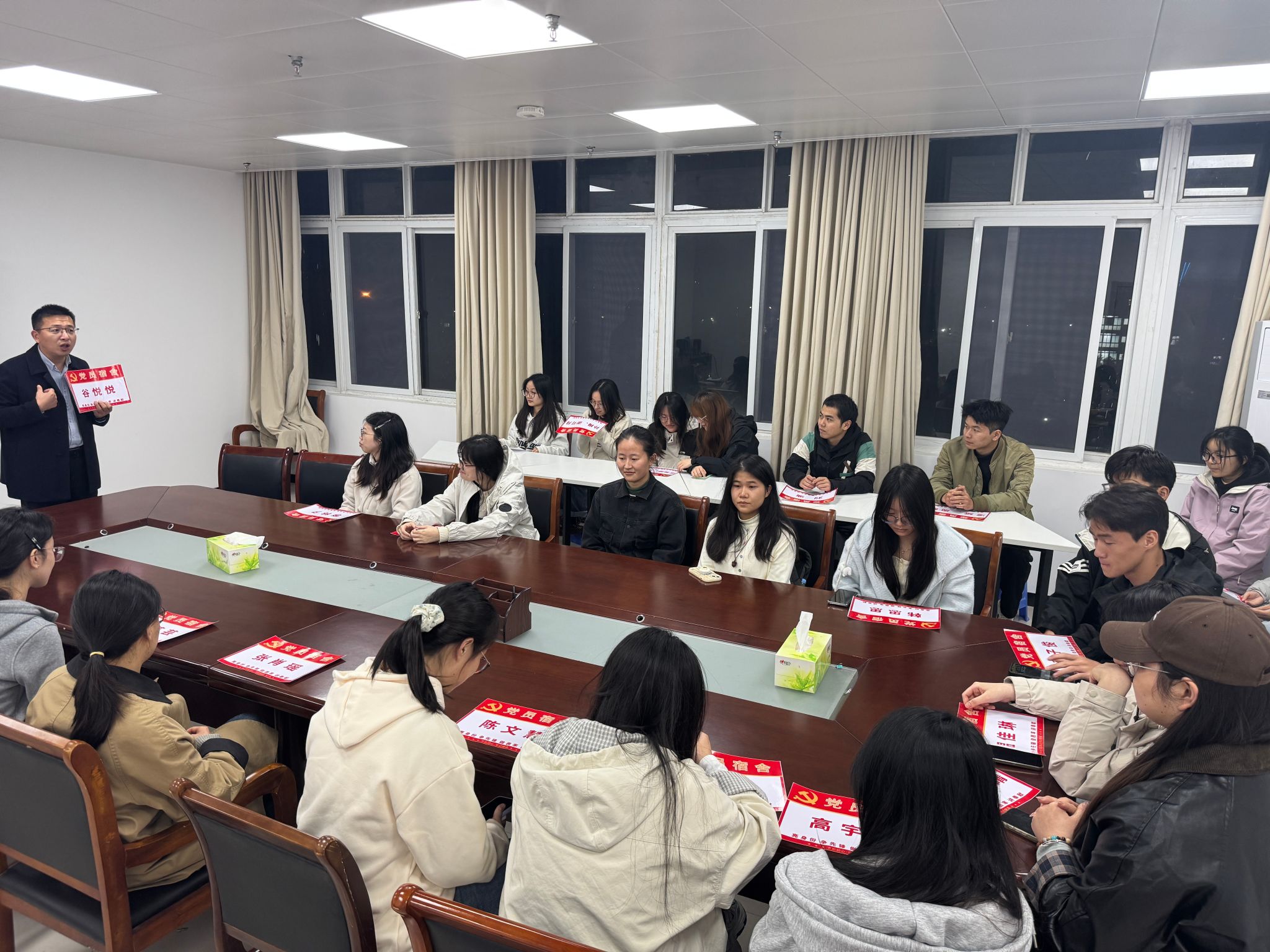 会上还举行“党员宿舍”颁发仪式。钱彬彬授牌时强调,“党员宿舍”既是荣誉标识,更是责任象征,要求员工党员要主动亮身份、争先锋、做表率、讲奉献,在文明宿舍创建、优良学风营造等方面发挥先锋模范作用。