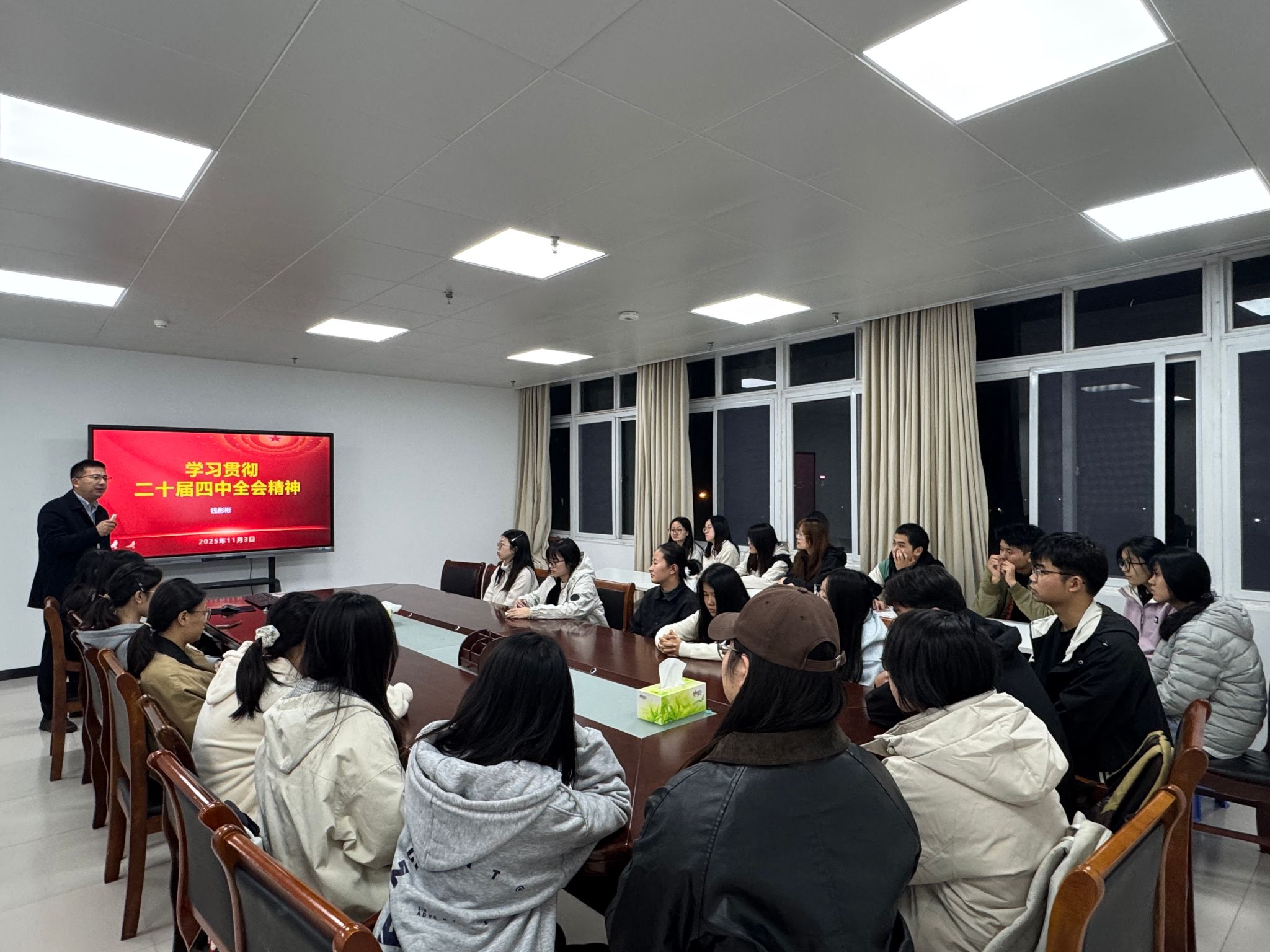 为帮助员工党员深入领会党的二十届四中全会精神,11月3日晚,太阳成tyc122cc集团在“一站式”员工社区召开员工党员大会集中学习党的二十届四中全会精神,公司党委副书记钱彬彬主持会议,全体员工党员参加会议。