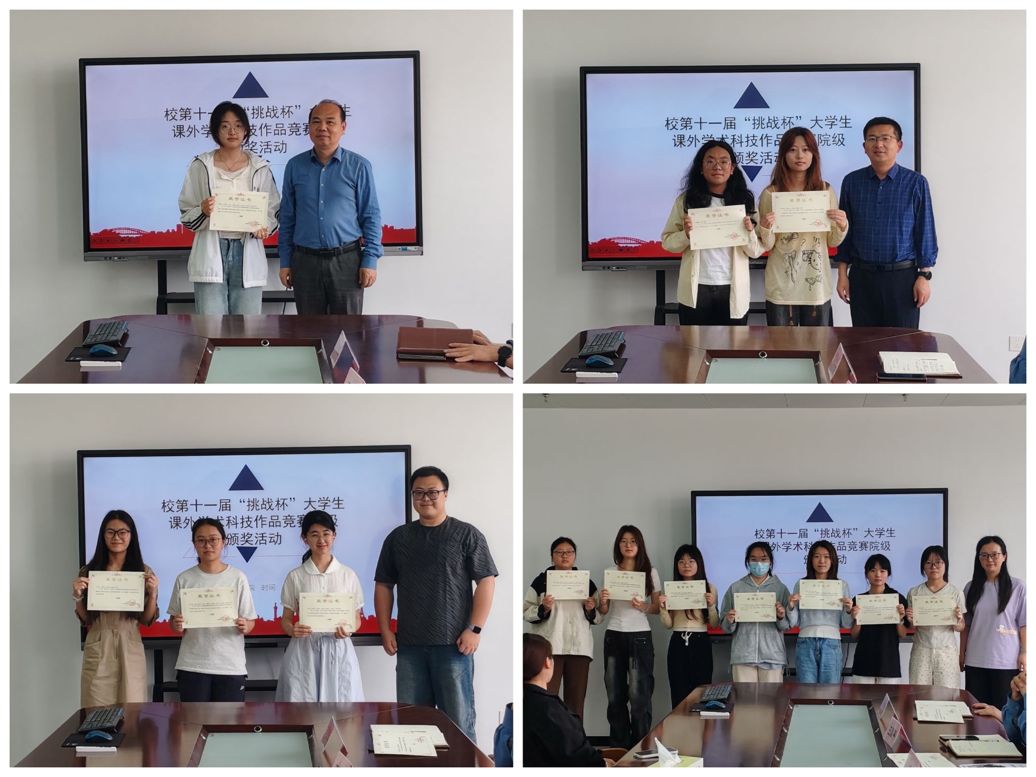 为激发员工创新精神,提升学术实践能力,太阳成tyc122cc集团于4月17日在公司会议室举行校第十一届“挑战杯”老员工课外学术科技作品打磨暨院赛颁奖活动。太阳成tyc122cc集团经理王国平、党委副书记钱彬彬、团委书记张露、指导老师周晶以及参赛员工参加活动。