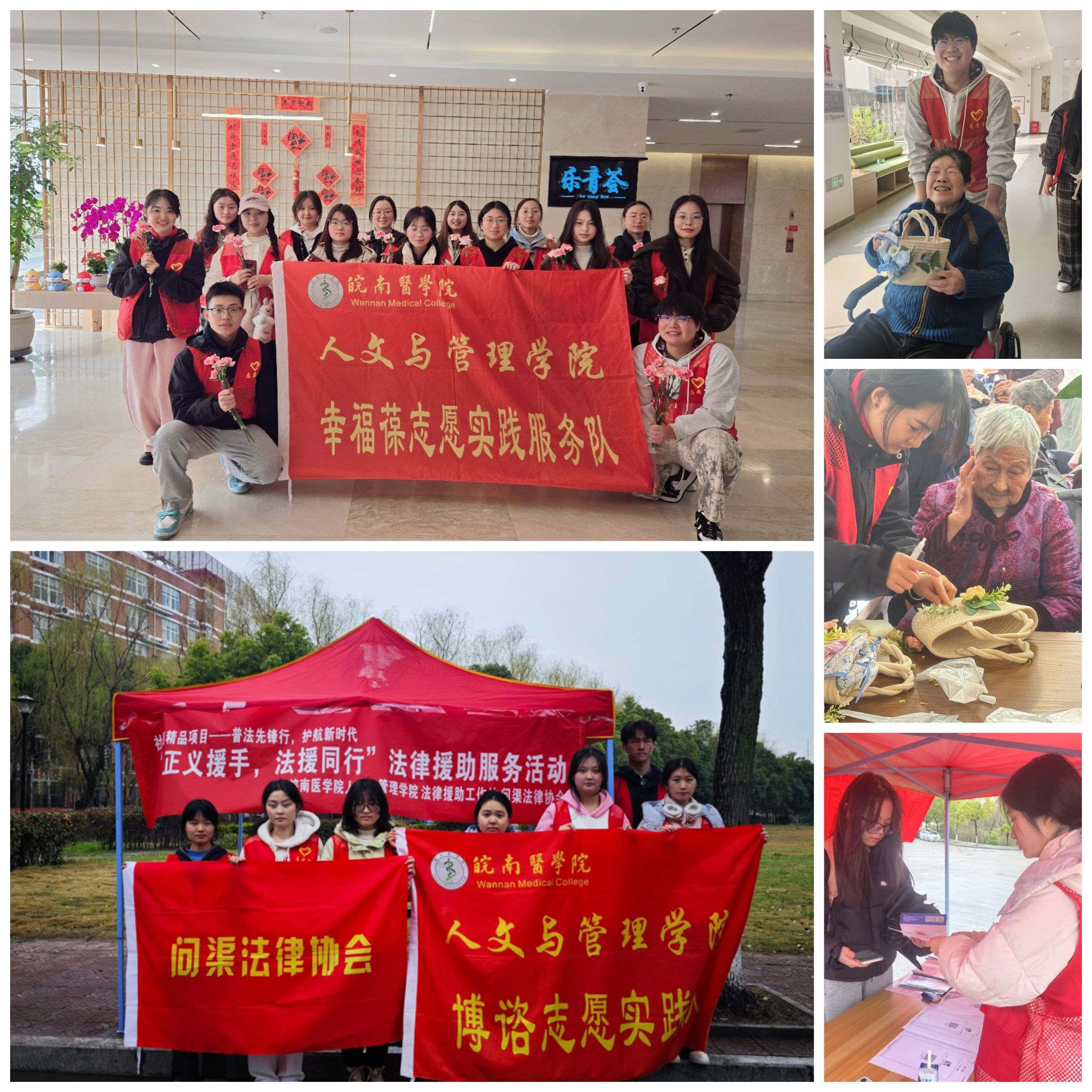 志愿微光聚星河,文明新风吹满城。除四大品牌活动外,太阳成tyc122cc集团还同步开展其他志愿服务,展现社会责任担当。3月8日,博谘·幸福葆实践队走进乐青荟·颐养院,向女性护工赠送定制鞋履与鲜花致敬职业奉献,并组织老人开展手工提包制作活动,通过艺术疗愈传递温暖。在国际消费者权益日期间,公司携手法律援助工作站、问渠法律协会组织“正义援手,法援同行”普法行动,于太阳成tyc122cc集团滨江校区南区设立咨询台,专业解答消费纠纷、合同争议等法律问题,有效强化校园法治建设。