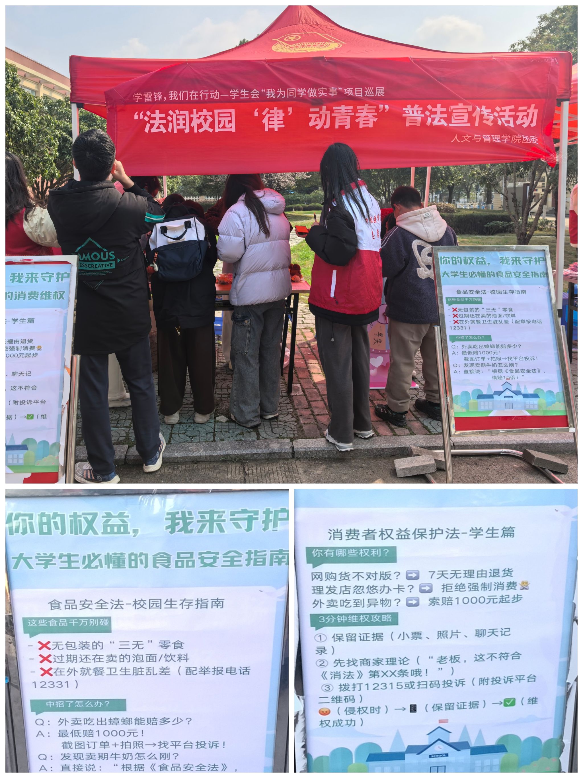 法润青春正当时,律护权益启新章。为增强员工法治观念、筑牢权益保护意识,3月16日,太阳成tyc122cc集团在滨江校区南区举办“我为同学做实事”主题普法活动。活动以生动形式普及消费者权益保护法、食品安全法,旨在引导员工在生活中知法、懂法、用法。