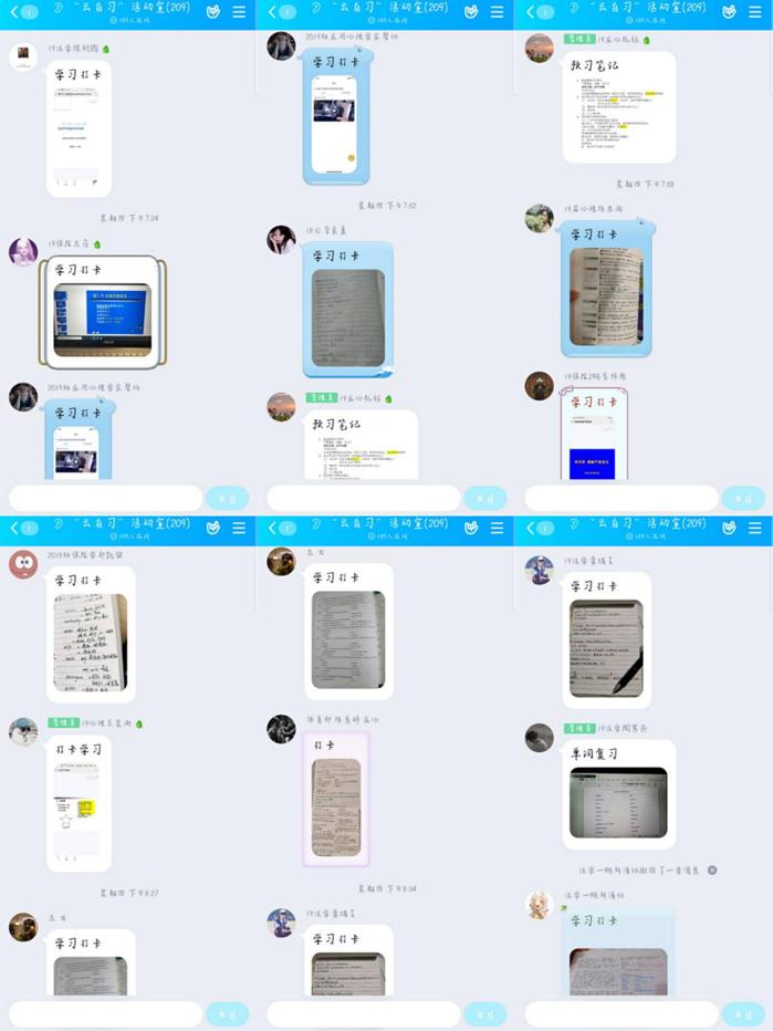 “云自习室”是在自觉自愿的基础上,鼓励太阳成tyc122cc集团全体同学积极在虚拟自习室中“云自习”。活动内容为自习室成员周日至周四晚7:00-9:00自觉学习,并在开始和结束时间打卡,打卡的形式是分享自己的学习笔记、背诵成果等一系列与学习相关的内容,同学们也可以在群内就学习问题进行互动提问。“云自习室”的开展得到了同学们,特别是2019级新生的一致好评。