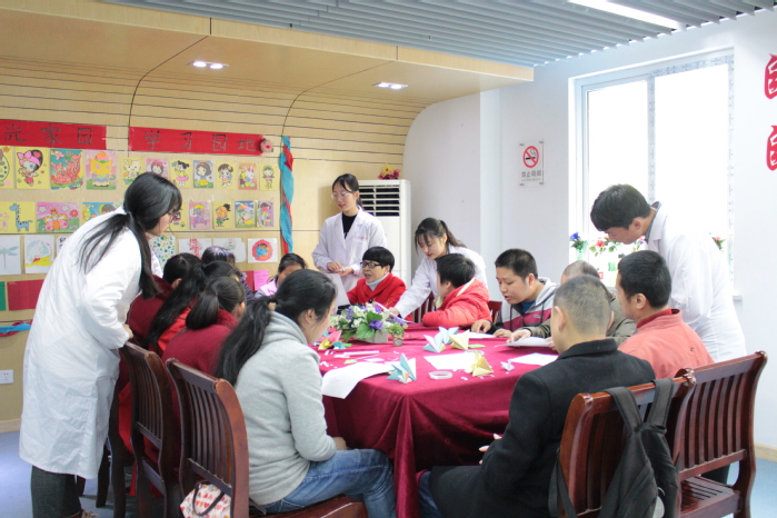 员工志愿者们来到社区“阳光家园”,一对一辅导“阳光家园”的智残孩子开展手工工艺作业,教孩子们亲手制作折纸花。孩子们在“小老师”们的携手帮助下,都成功折出了漂亮的纸花,开心向园长展示着自己的纸花。志愿者们与这些智残孩子们融为一体,让这群特殊的孩子感受到社会的关爱,对未来充满希望。员工志愿者们用实际行动诠释和传递了雷锋精神,传播了志愿服务理念,加深了党员们对新时代雷锋精神的认识。