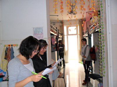 检查分为四个小组同时进行,检查过程中,“我爱我家”宿舍管理委员会委员遵循公正评判,严格打分的原则,依次检查了男、女生各个寝室。检查中,宿舍整体状况良好,宿舍内整齐干净,宿舍氛围积极上进,特别是新生宿舍装扮的温馨、舒适。本次检查评出了优秀宿室并向他们颁发了流动红旗。