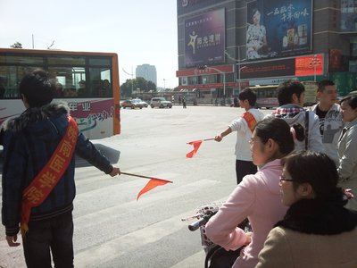3月21日,为进一步弘扬志愿者精神,人文与管理系2010级信管(1)班的同学前往中山路步行街十字路口等人流密集的地区,志愿帮助交警值勤,维持交通秩序并积极宣传交通安全常识。