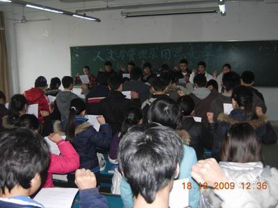 2009-2010期末考试将至,为迎接本次考试,保证考试期间良好的考场秩序,12月18日中午,人文与管理系团总支员工会诚信考试宣誓大会在西教学楼104召开。会议由系员工会主席魏林峰主持,系团总支书记吴映辉老师及员工会全体成员出席了本次会议。