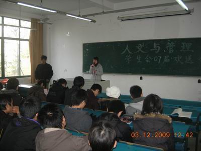 12月3日中午,西教104教室内欢声笑语,人文与管理系07、08、09级员工会成员齐聚一堂,举办“人文与管理系07级员工会成员欢送会”。员工会主席魏林峰主持会议,团总支书记吴映辉老师出席会议。