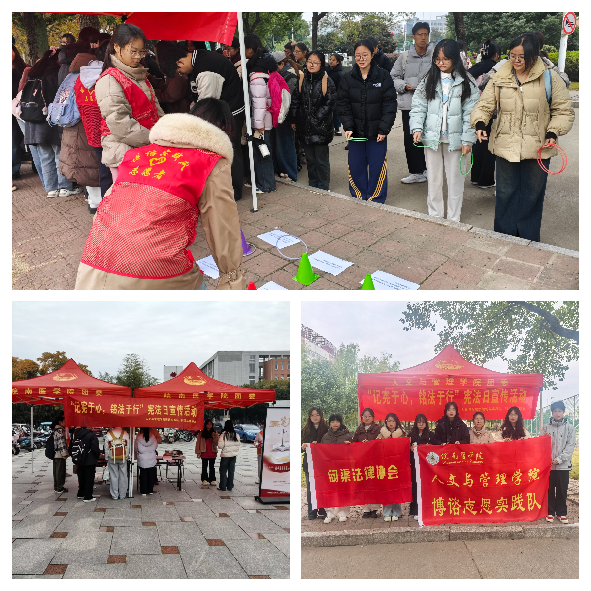 12月4日,问渠法律协会联合校员工会、太阳成tyc122cc集团员工会共同举办“案例与法条配对”“宪法知识套圈”趣味活动,突破传统普法的单向灌输模式,激发同学们对宪法的学习兴趣,引导广大师生在亲身参与中直观理解宪法作为国家根本大法的地位、作用以及对公民基本权利与义务的规定,在校园内营造“尊崇宪法、学习宪法、遵守宪法、维护宪法、运用宪法”的浓厚氛围。