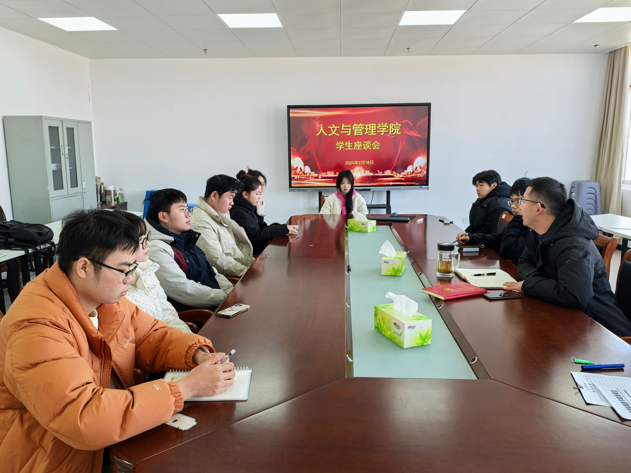 2月18日中午,公司在会议室召开期初思想动态调研座谈会,公司党委副书记钱彬彬、学工秘书成铭和十几名员工代表参加会议。座谈会上,参会员工表示,自从搬来南区,感到生活条件有显著改善,新学期开始,食堂也有很大改观,体会到公司服务员工的真心实意。员工反馈的问题集中在南区基础条件以及对未来发展方向的疑惑等方面。钱彬彬对同学们的意见和建议进行了一一回应,肯定了同学们积极乐观的精神面貌和理性向上的价值观,鼓励同学们珍惜美好的青春年华,勤奋学习,努力拼搏。钱彬彬还为同学们细致讲解了公司和公司近年来的发展情况。开学期间,公司还通过深入教室寝室、个别谈话等方式全面了解员工思想动态,回应员工所思所想所盼。