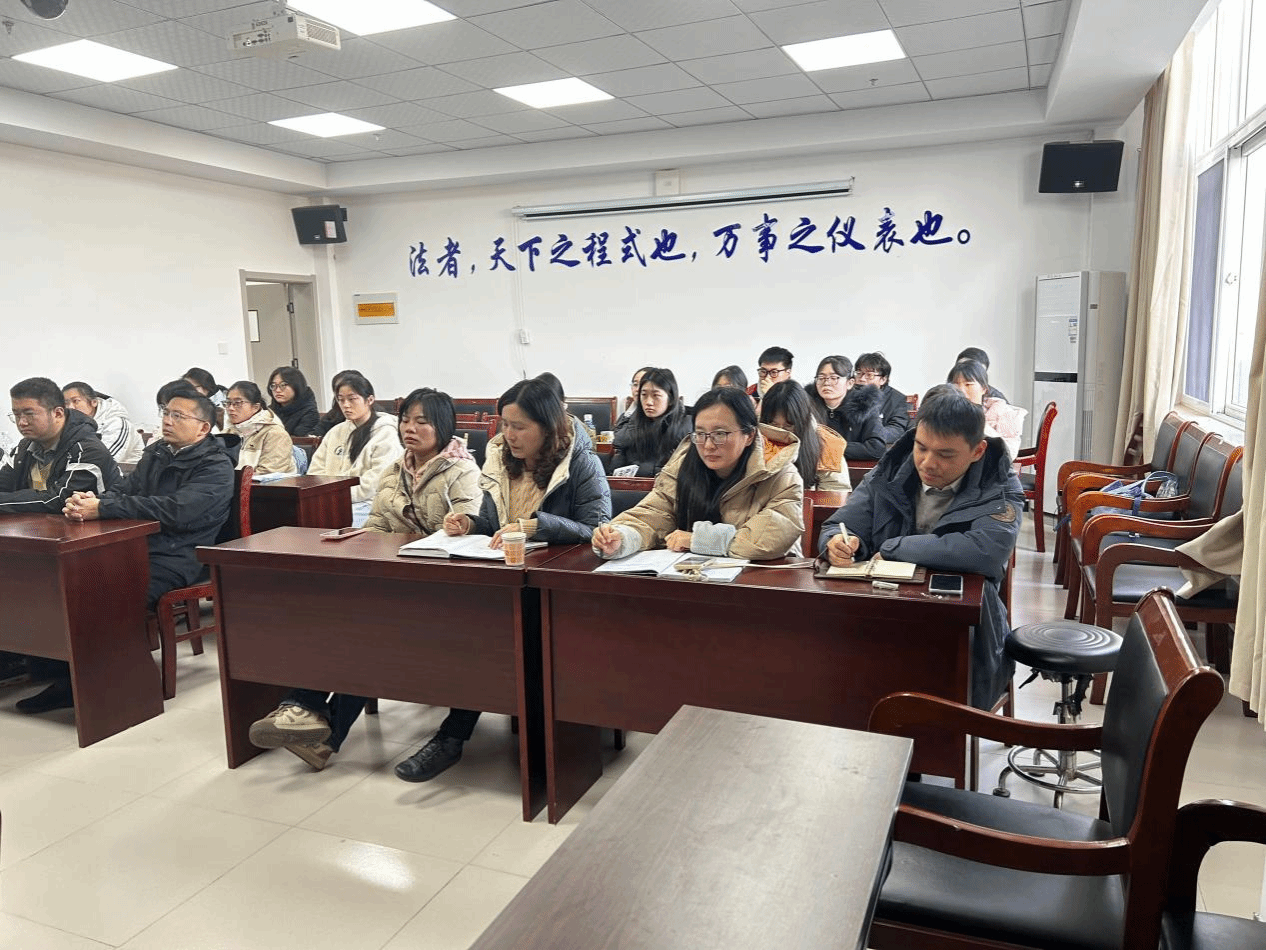12月12日上午,为深入学习贯彻习近平法治思想,贯彻落实党的二十大精神和二十届三中全会精神,人文与管理公司党委副书记钱彬彬、教务处胡蝶、法学教研室主任高玉玲、法学专业师生代表在公司7409模拟法庭齐聚一堂,通过线下的方式观看直播,聆听全国人大常委会法制工作委员会研究室主任、法工委新闻发言人黄海华所作的专题授课,深刻领悟习近平法治思想的真理力量和实践伟力。