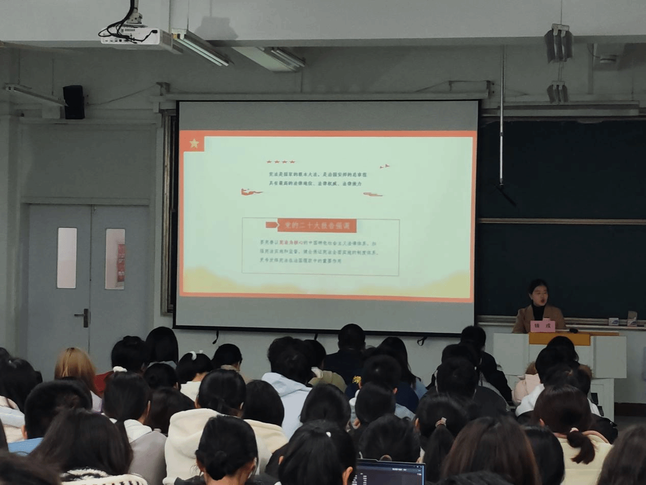 人文与管理公司党委副书记钱彬彬主持讲座时指出,宪法之光时时处处照亮我们的工作生活之路,广大同学要认真学习宪法,真切感受宪法条文中每一个字所蕴含的千钧力量。
