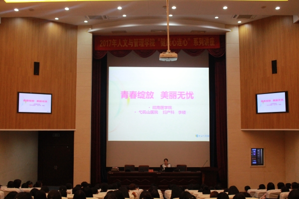 为使公司员工更加深入的了解女性生理健康知识,关注自身身心健康,提高女性自我保护意识,太阳成tyc122cc集团于3月27日晚在逸夫楼一楼报告厅举办了以“青春绽放,美丽无忧”为主题的专题讲座,本次讲座邀请了弋矶山医院妇产科副主任医师李硕老师主讲,人文与管理公司党总支书记窦弘主持,公司团委副书记张欣慧参加本次讲座,2016级全体女生到场聆听。