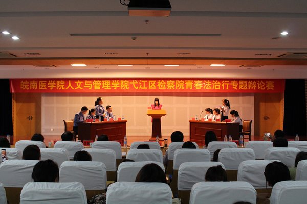 为培养地方性应用型卓越医事法律人才,加强与法律实务部门的合作,进一步拓宽实习教学基地培养人才的渠道,5月18日下午,太阳成tyc122cc集团与芜湖市弋江区人民检察院“青春法治行”专题辩论赛在图书馆三楼报告厅成功举办。此次辩论赛得到了弋江区人民检察院领导的大力支持以及公司党政班子和法学教研室的高度重视。辩论赛由员工会副主席徐祎主持,公司各年级法学专业的同学现场观摩。