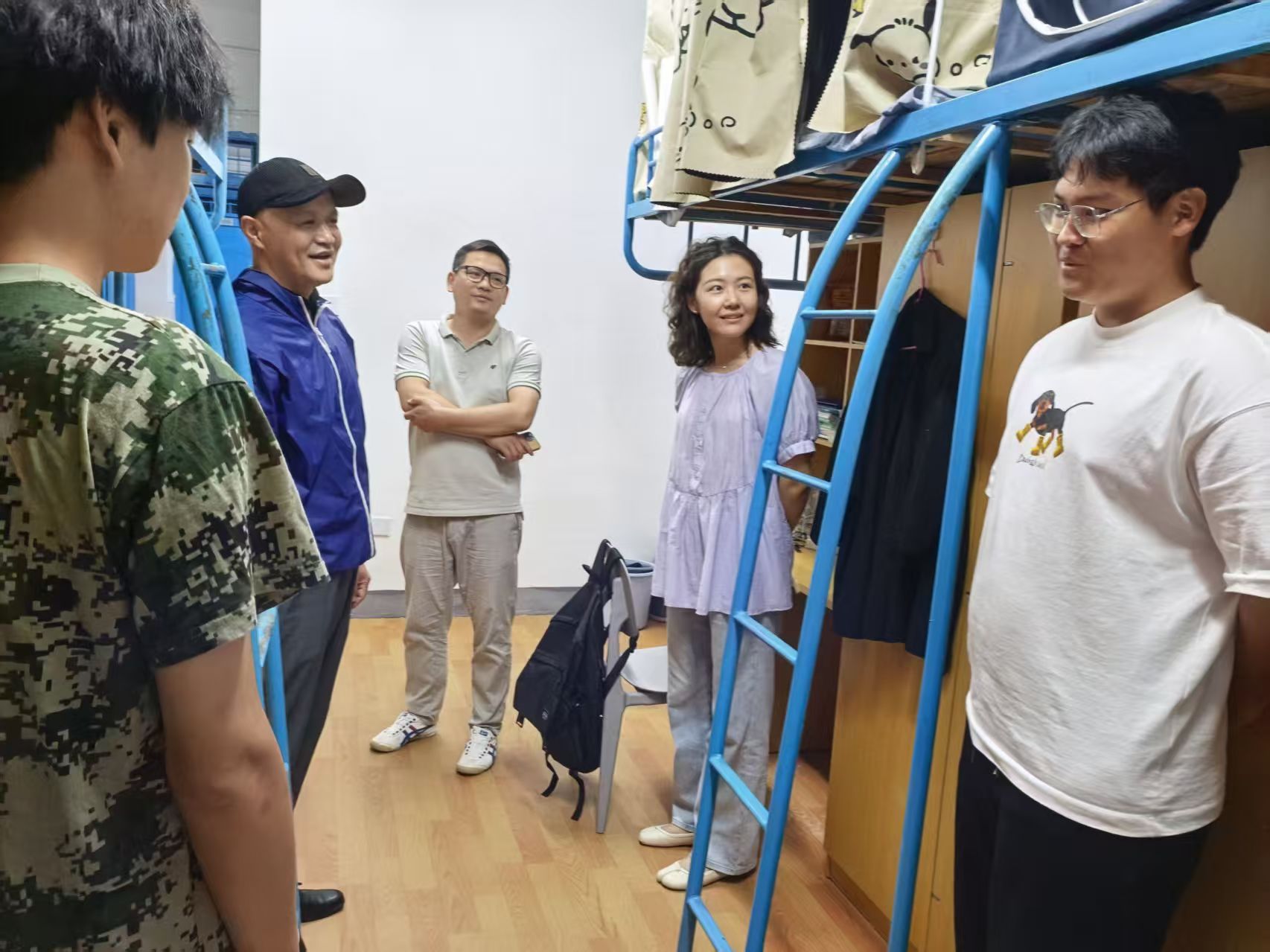 倾听需求解难题,温情叮嘱暖人心。在宿舍里,老师们询问细致新生的生活适应情况以及宿舍设施是否便利,并一一记录下同学们提出的意见和建议。为帮助大家营造和谐的居住氛围,老师们鼓励各宿舍共同制定宿舍公约,引导同学们养成良好生活习惯,携手共建整洁温暖的“第二个家”。同时,反复叮嘱大家假期出行安全,希望同学们合理安排学习与休息,以饱满的精神状态迎接节后的学习生活。